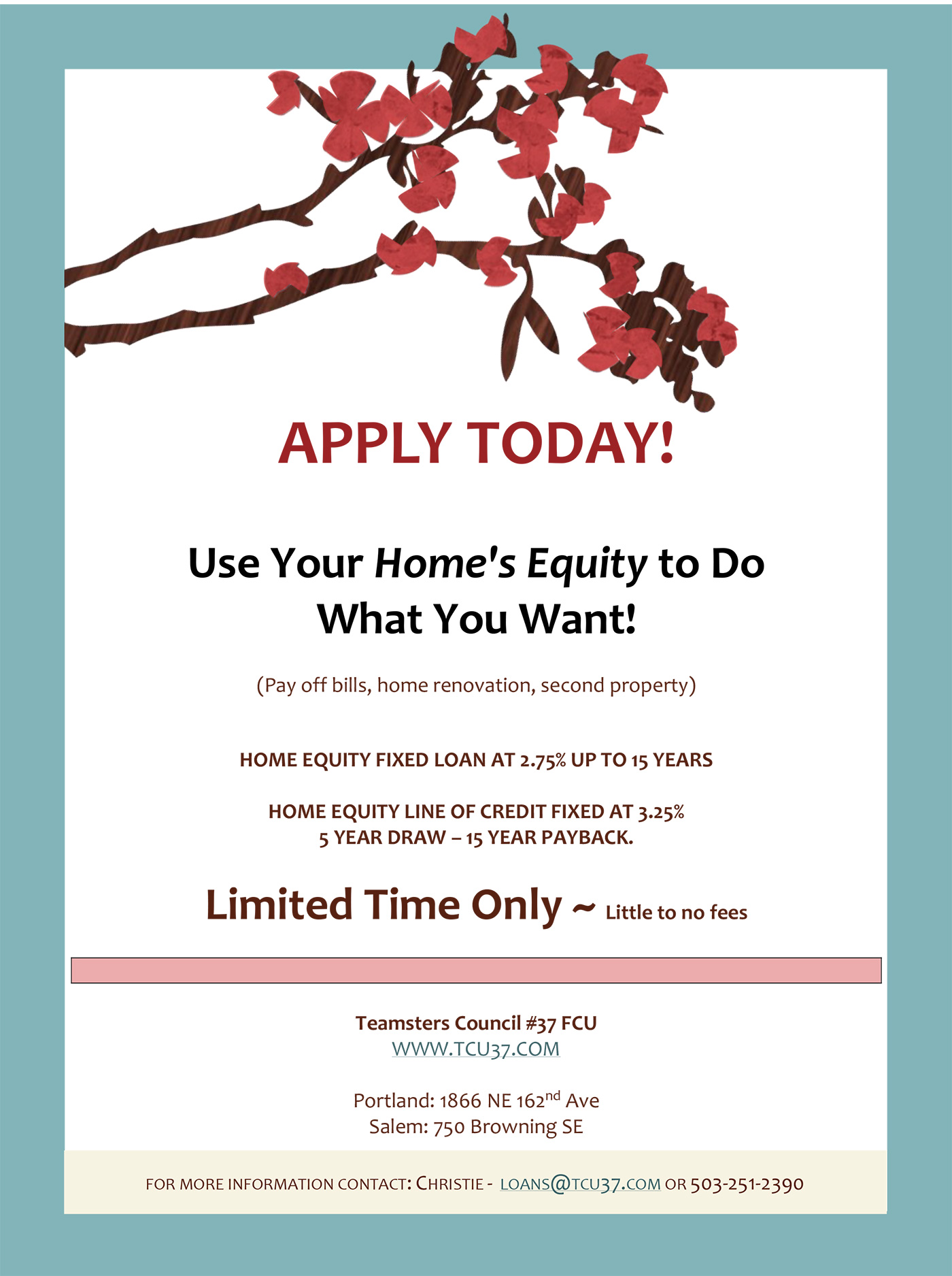 Teamsters Federal Credit Union is a local credit union serving the greater Portland area as well as the state of Oregon. Call or apply now to learn more about our Visa Platinum Card. Once a member always a member.